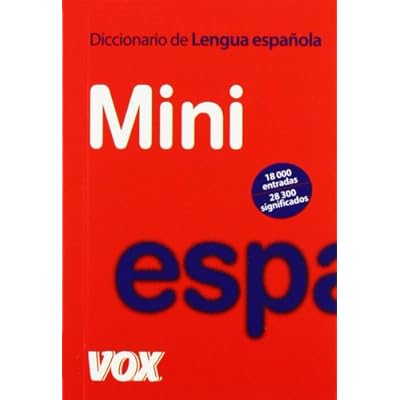 Reseña del editor Diccionario Mini de la Lengua Española El diccinario más pequeño en formato y precio -- Más de 18 000 entradas -- 28 300 significados -- El léxico básico del español de América y España. -- Definiciones precisas y certeras.Tapa blanda=672 páginas. Editor=Vox; Edición: edición (30 de abril de 2007). Colección=Vox - Lengua Española - Diccionarios Generales. Idioma=Español. ISBN-10=8483329522. ISBN-13=978-8483329528. Valoración media de los clientes=Sé el primero en opinar sobre este producto. Clasificación en los más vendidos de AmazonDiccionariosGramáticaInfantil=nº248.276 en Libros (Ver el Top 100 en Libros) .zg_hrsr { margin: 0; padding: 0; list-style-type: none; } .zg_hrsr_item { margin: 0 0 0 10px; } .zg_hrsr_rank { display: inline-block; width: 80px; text-align: right; } n.° 1107 en Libros > Consulta > n.° 1124 en Libros > Lengua, lingüística y redacción > n.° 67373 en Libros >.